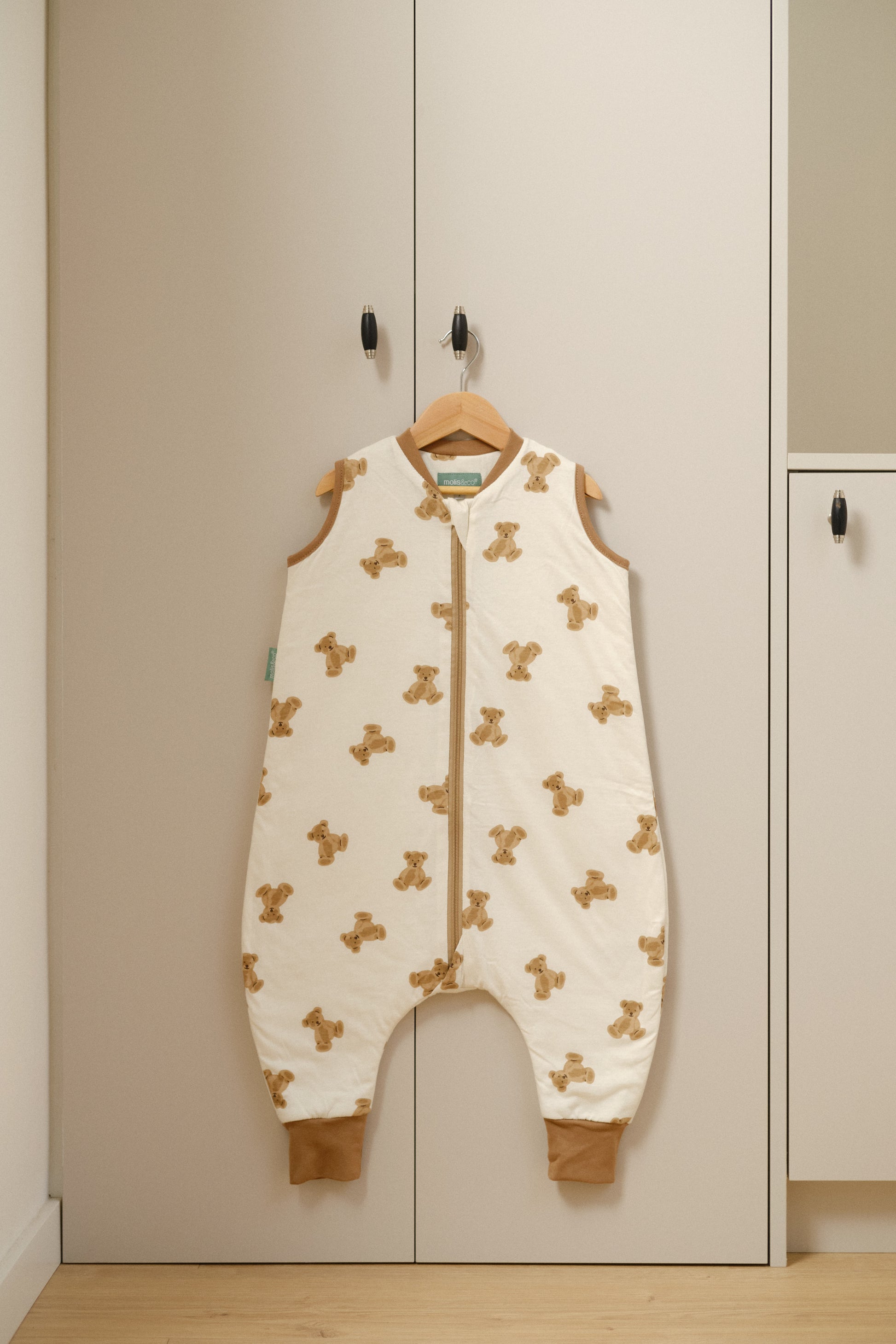 Notre gigoteuse à pieds de mi-saison est un vêtement chaud légèrement rembourré conçu pour être porté par-dessus un pyjama afin de garder votre enfant au chaud pendant qu'il dort, joue, marche ou se déplace à quatre pattes.