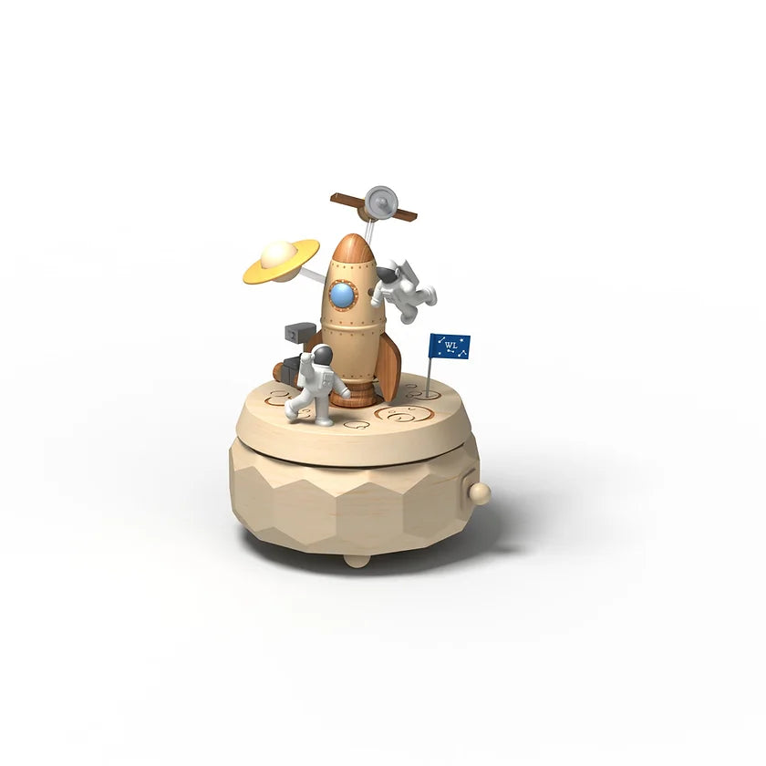 Boîte à musique en bois sur le thème des spationautes. Partez à la découverte de l'espace.